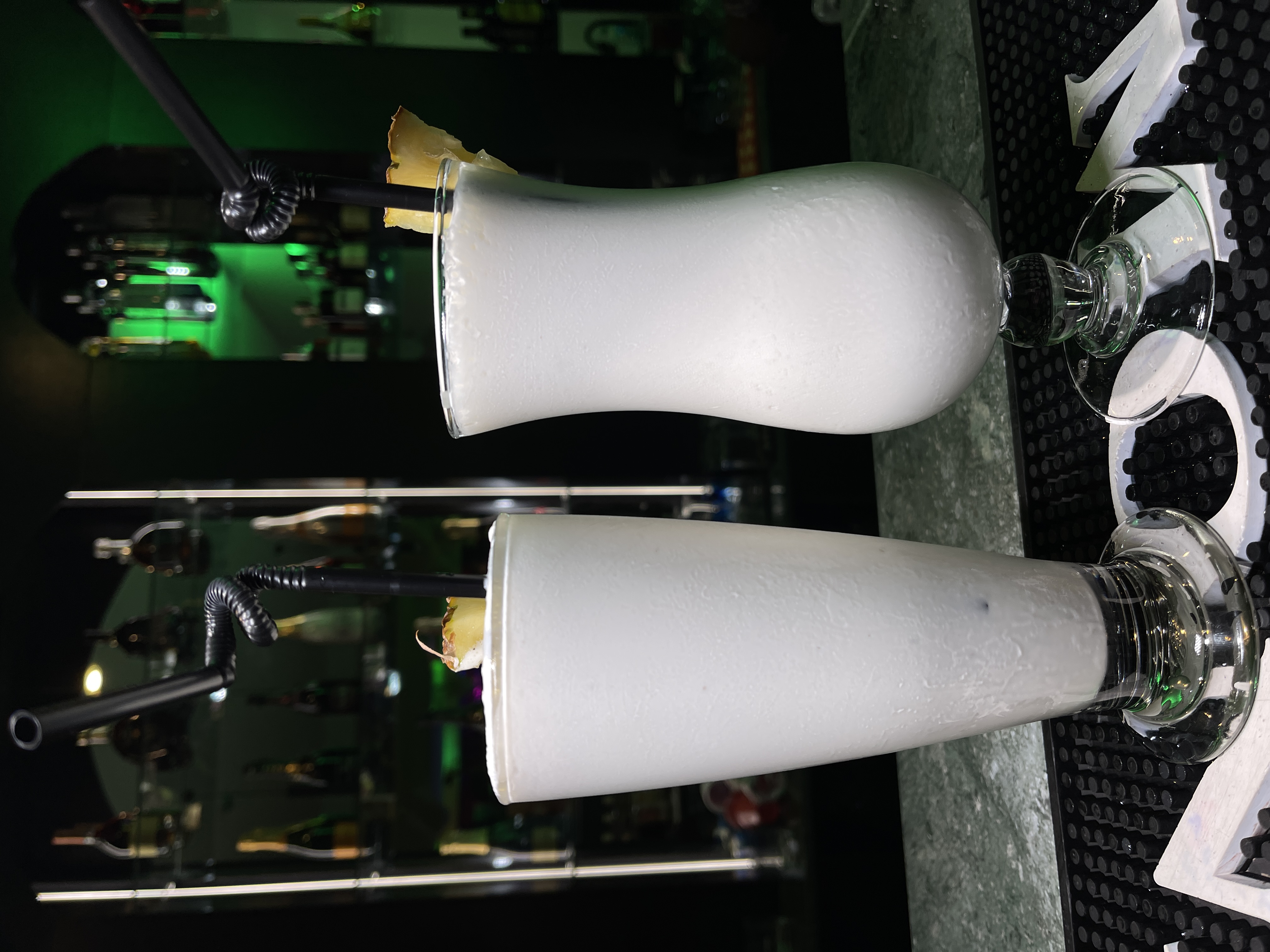 A Base Of Blueberry Fruit, And Vodka Blended With A Topping Of Fresh Pinacolada (pineapple & Coconut).